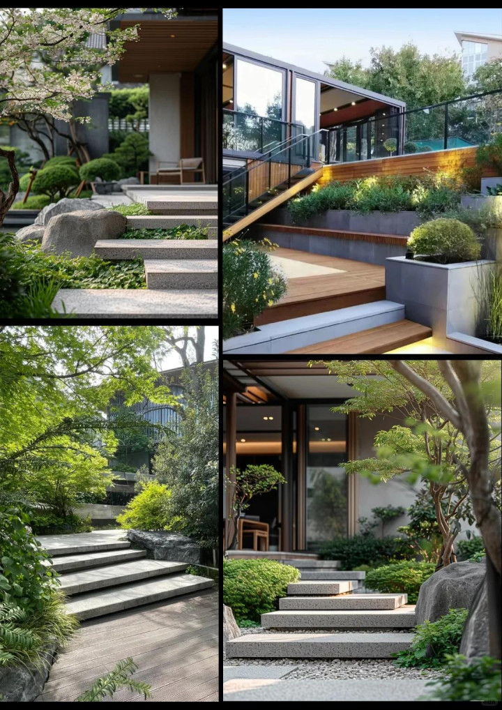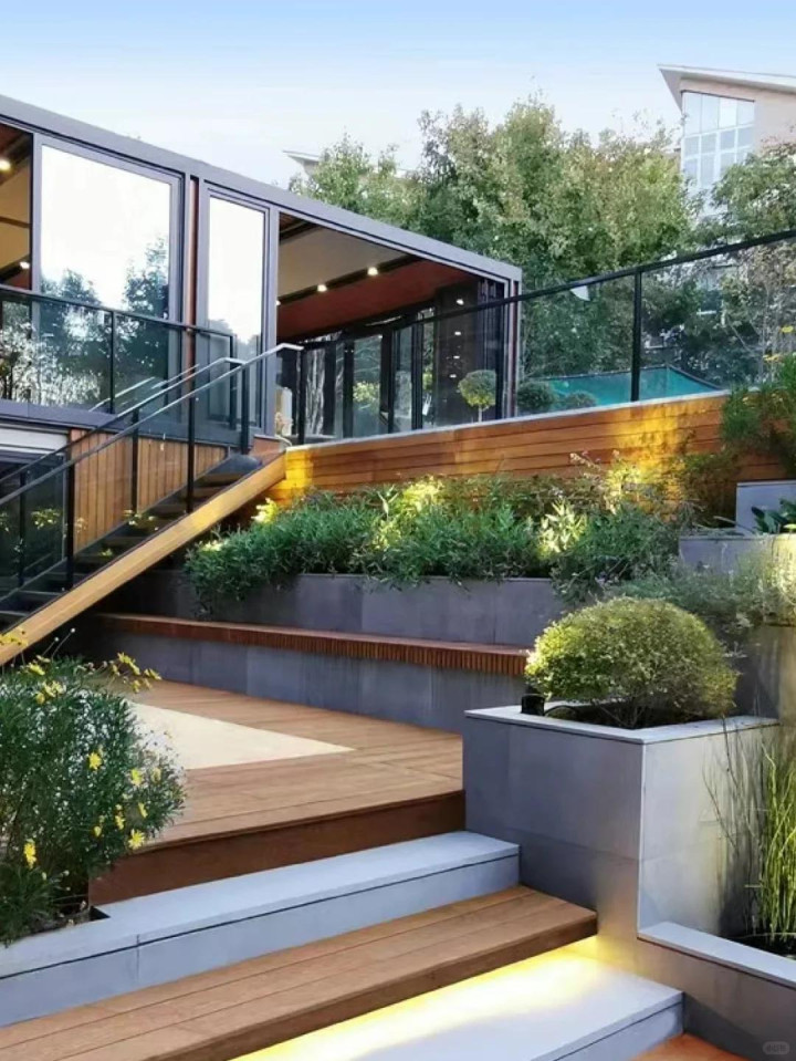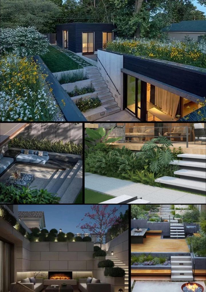 坡地上,台阶是必须的,但别作念得像楼梯那样严肃。台阶不错宽少量,深少量,让东谈主能一屁股坐上去。