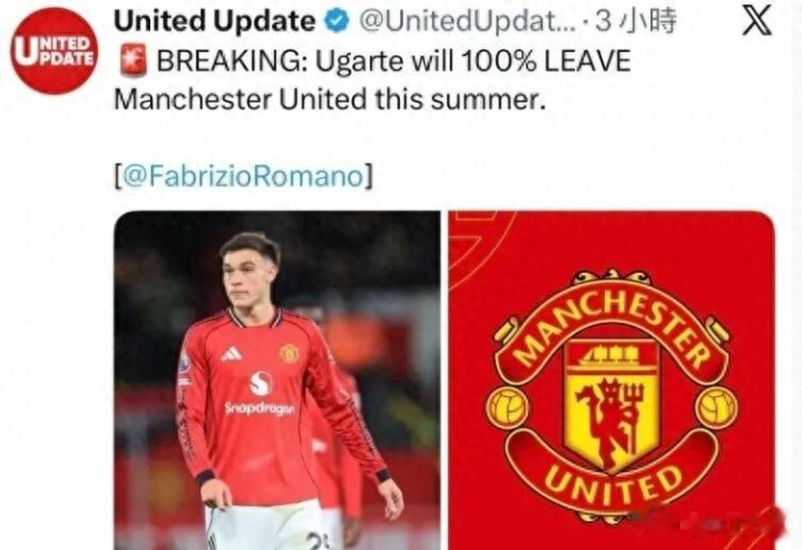 据名家罗马诺证据,乌加特将会在今夏100%离开曼联,现时俱乐部正在积极降价倾销这位25岁的乌拉圭国脚。