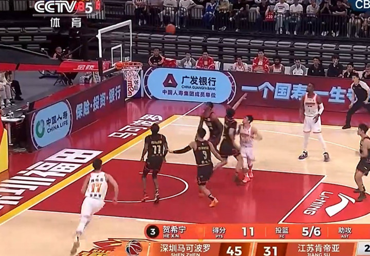 深圳队全程掌控节律,首节即成立12分上风(31-19),贺希宁压哨打成"2+1"奠定基调。