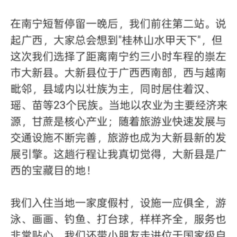 【山水不输桂林!霍启刚发文力荐:这才是广西着实的矿藏观点地】晴明假期,霍启刚和郭晶晶携家东说念主游广西,他们是高铁径直从香港到南宁,第一站游完南宁以后,第二站他们并莫得选拔环球觉得的桂林,而是选拔了边城崇左,并在崇左截至了广西之旅。后其在酬酢媒体上发长文晒图,盛赞崇左为矿藏观点地。