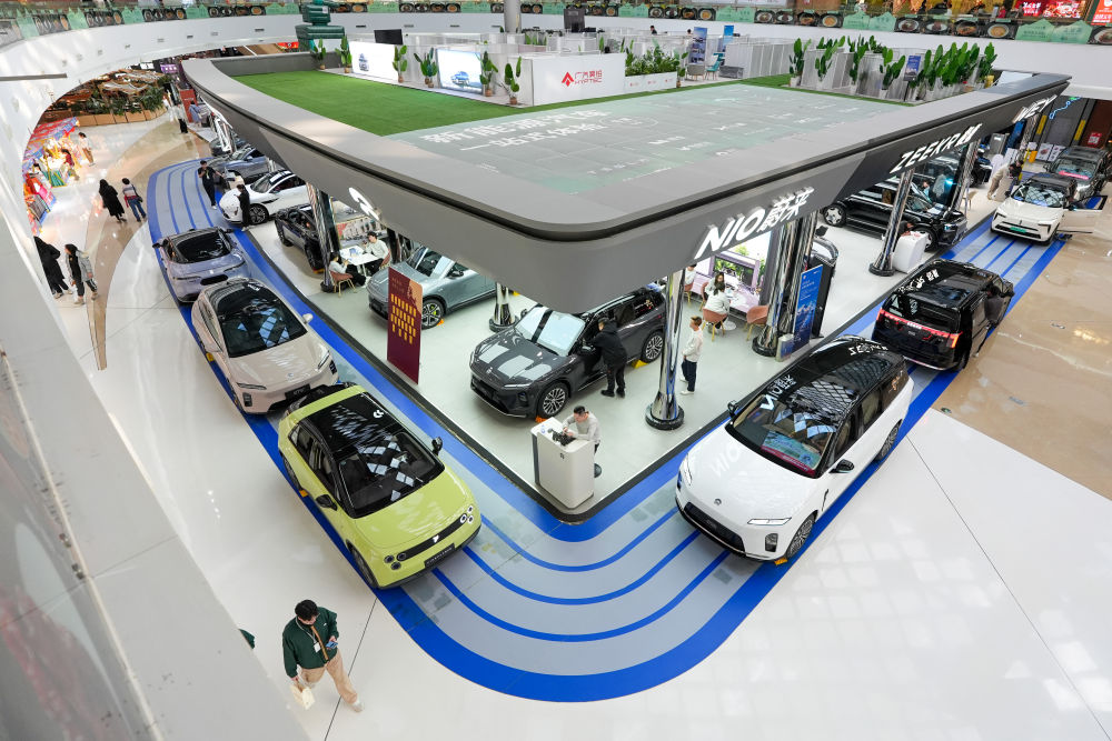 在北京市向阳区一个市集内,市民在了解新能源汽车(2026年2月11日摄)。新华社记者 鞠焕宗 摄