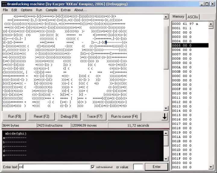▷Windows系统下的BrainfuckIDE示例.图源:softwarerecs.stackexchange.com